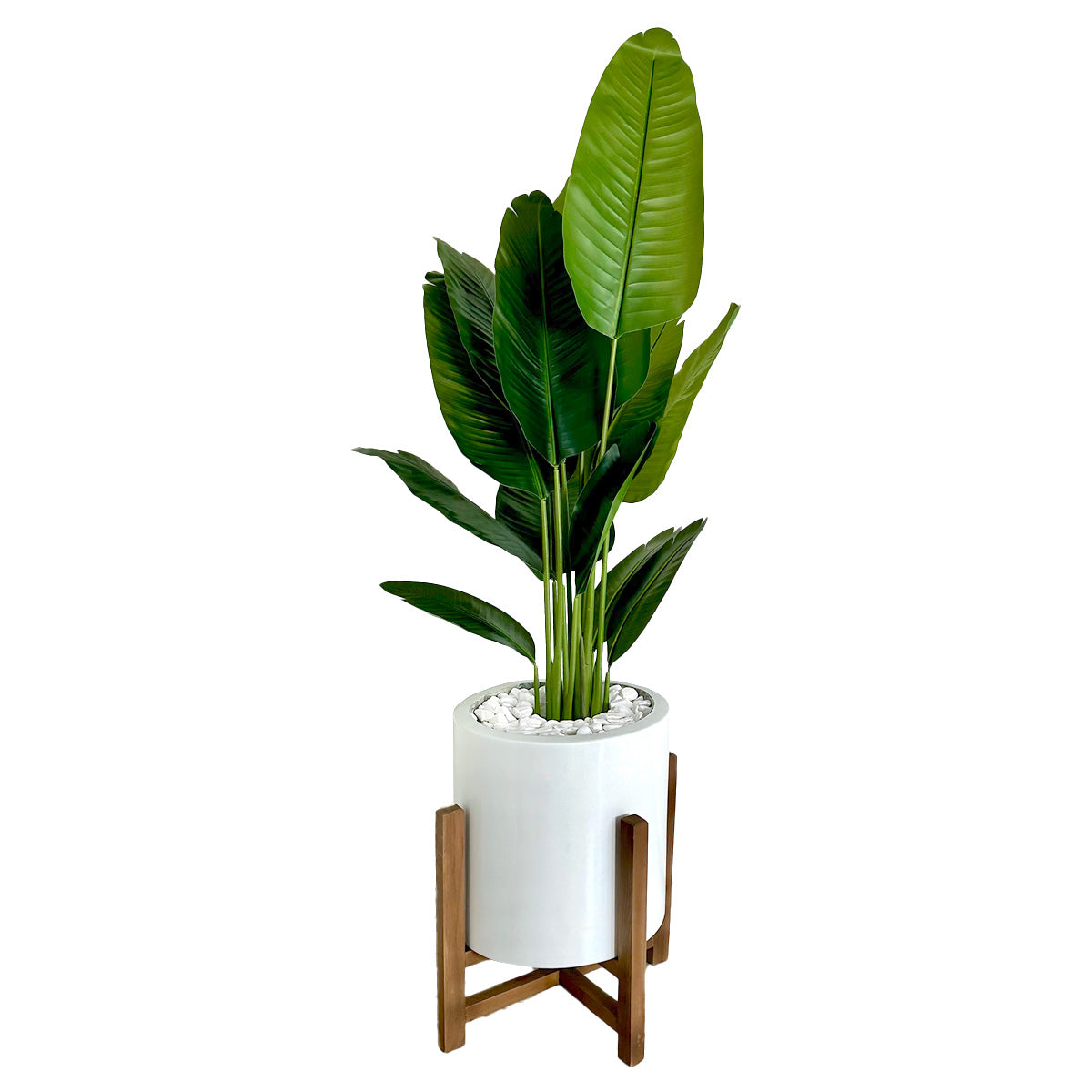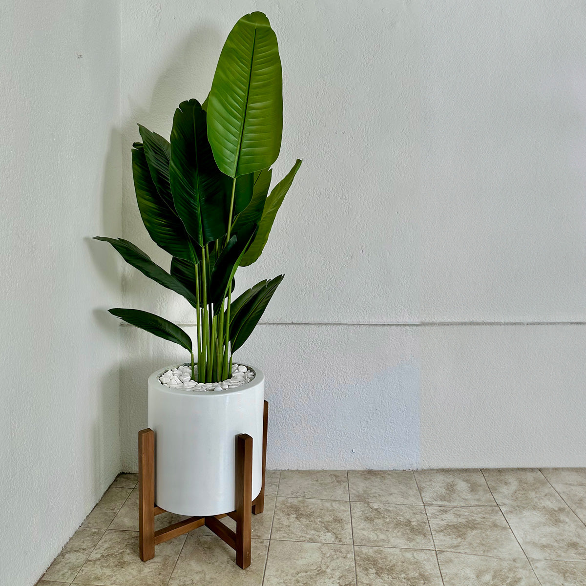Incluye una base de madera de 50 cm para darle altura a la maceta.